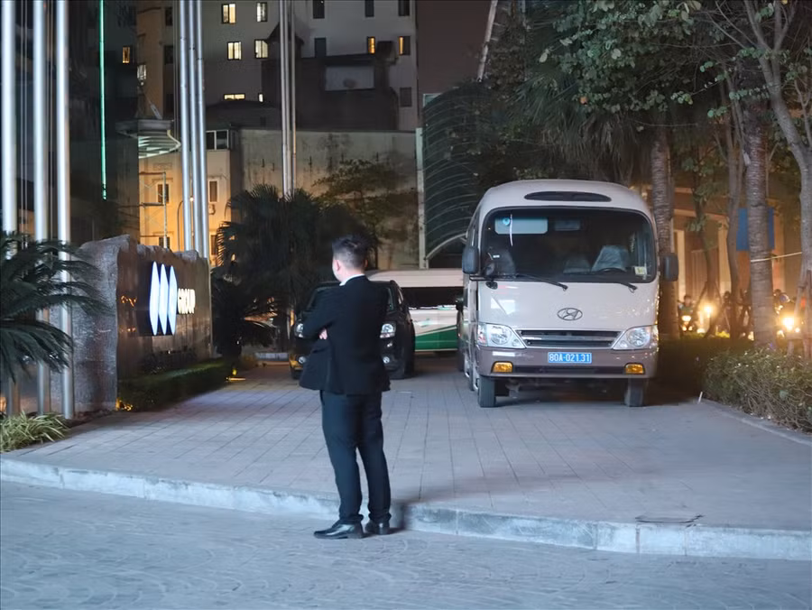 Cùng thời điểm, tại tòa nhà FLC, 265 Cầu Giấy, nhiều xe biển xanh xuất hiện tại đây. Một số người mặc sắc phục công an cũng có mặt tại khu vực này. Có ít nhất 5 chiếc xe biển xanh, mang BKS 80A xuất hiện tại khu vực này.