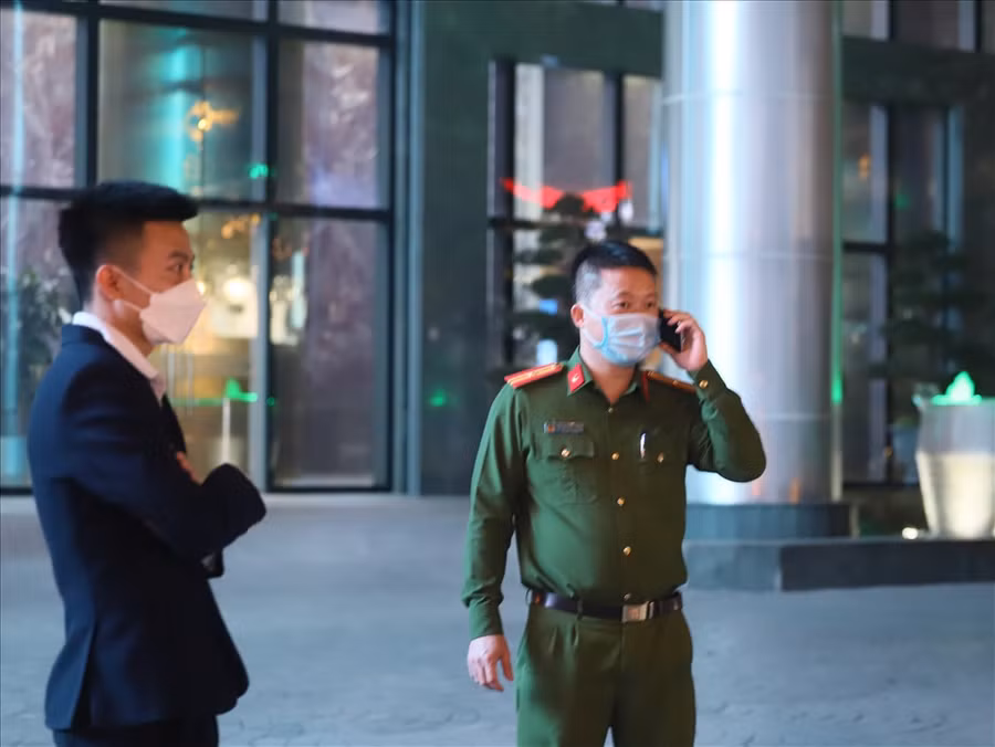 Sau khi công bố khởi tố, tạm giam với ông Trịnh Văn Quyết, nhiều công an đã có mặt tại địa điểm trụ sở Công ty CP Tập đoàn FLC và nhà riêng của bị can này tại Khu Đô thị Mỹ Đình 2.