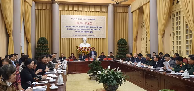 Chiều 16-12, tại Hà Nội, Văn phòng Chủ tịch nước đã tổ chức họp báo công bố lệnh của Chủ tịch nước CHXHCN Việt Nam công bố 11 luật đã được Quốc hội khóa XIV, kỳ họp thứ 8 thông qua. Đồng chí Đào Việt Trung, Ủy viên Trung ương Đảng, Chủ nhiệm Văn phòng Chủ tịch nước chủ trì họp báo.