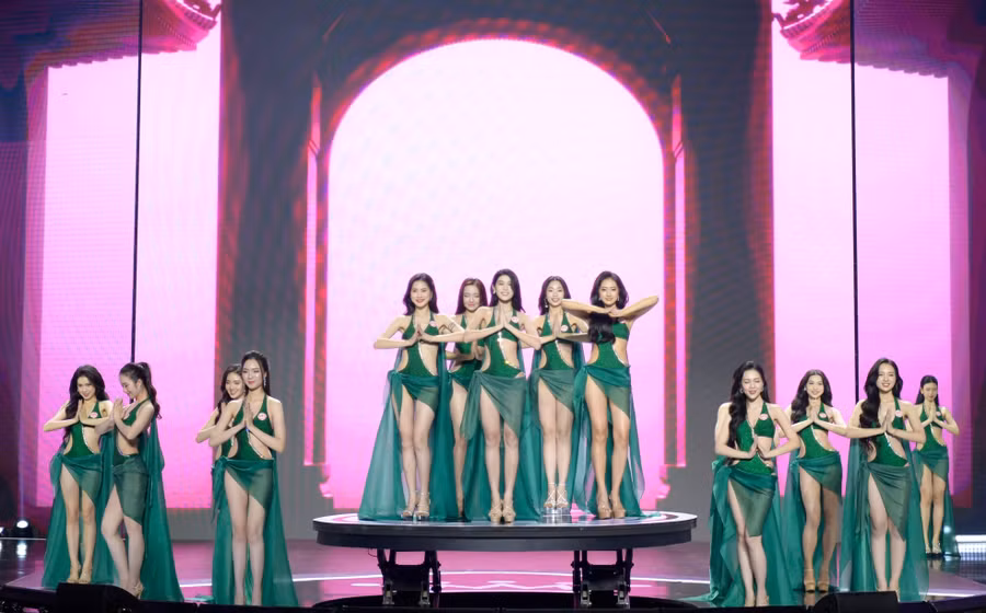 Sau đó, 41 thí sinh Hoa hậu Việt Nam 2024 chính thức bước vào phần trình diễn bikini - một trong những nội dung quan trọng của đêm thi Chung khảo toàn quốc. Sau hơn một tháng tập luyện cùng đạo diễn catwalk, biên đạo múa và chuyên gia đào tạo phong thái, các thí sinh đã có sự thay đổi rõ rệt.