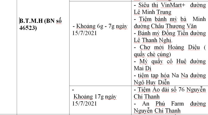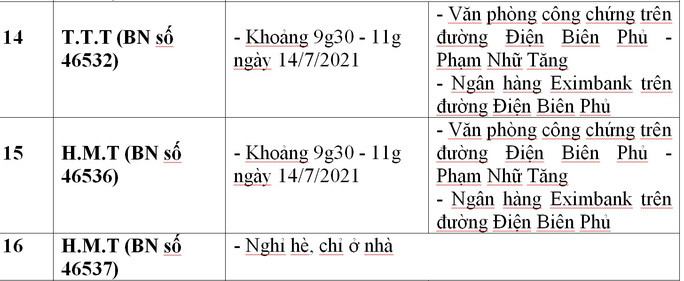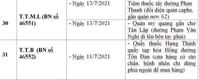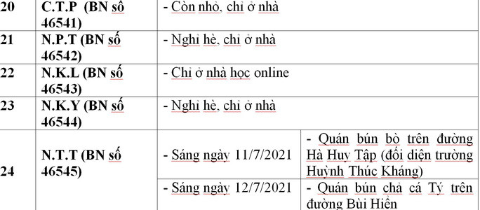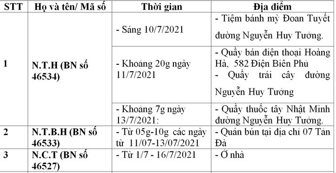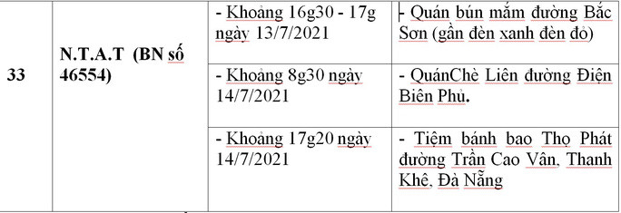 Dưới đây là các địa điểm cụ thể liên quan 33 ca Covid-19: