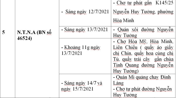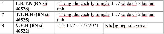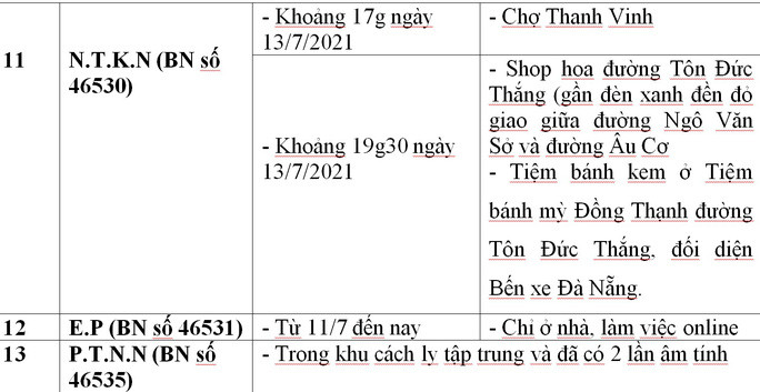 2 trường hợp dương tính sau khi hoàn thành cách ly Ban Chỉ đạo Phòng chống dịch Covid-19 TP Đà Nẵng cũng thông tin về 2 trường hợp phát hiện dương tính tại Hà Nội vào ngày 16-7 sau khi hoàn thành cách ly tại Đà Nẵng. Theo đó, 2 người này từ UAE về Đà Nẵng trên chuyến bay QH9305 lúc 9 giờ ngày 17-6, được cách ly tại khu cách ly tập trung - số 86 Nguyễn Chánh, quận Liên Chiểu. Cả 2 hoàn thành cách ly ngày 8-7 và có 3 lần âm tính vào các ngày 18-6, 30-6 và ngày 6-7. Sau khi hoàn thành cách ly tập trung thì được xe của khu cách ly quân đội đưa ra sân bay Đà Nẵng để về Hà Nội trên chuyến bay VJ514. Trên chuyến bay từ UAE về Đà Nẵng, trong quá trình cách ly có 2 ca dương tính vào ngày 18-6 và 2 ca dương ngày 30-6. Cả 4 ca này không cùng phòng, không tiếp xúc với 2 bệnh nhân trên |
