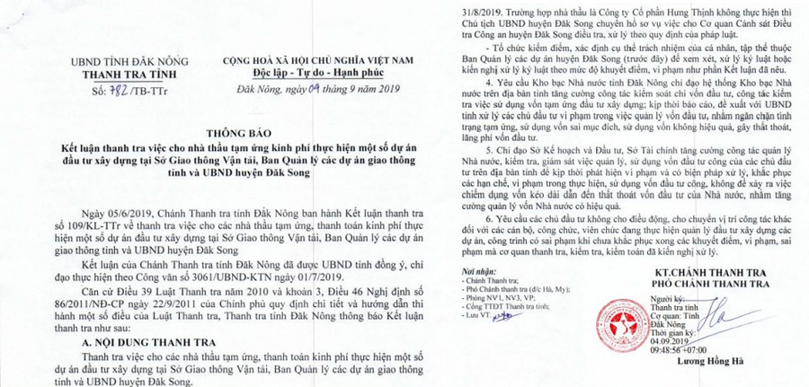 Kết luận của Thanh tra tỉnh Đắk Nông.