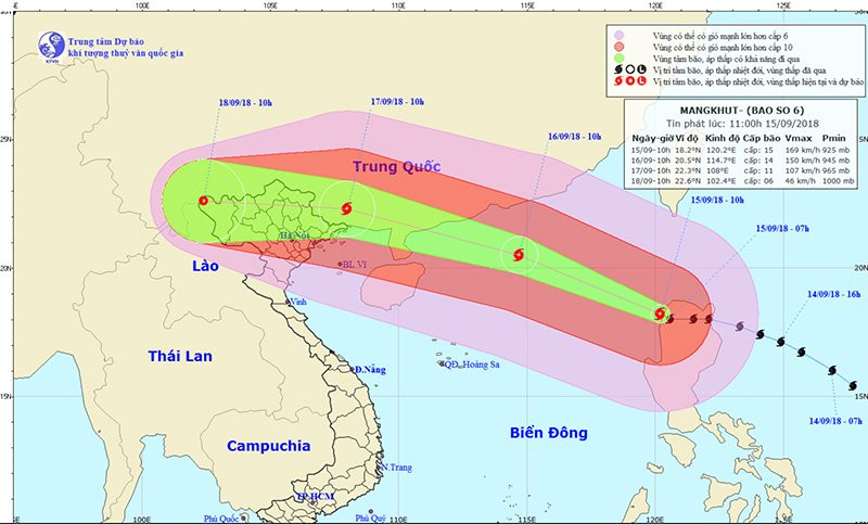 Trưa nay, bão MANGKHUT đã đi vào biển Đông thành cơn bão số 6, sức gió mạnh nhất vùng gần tâm bão mạnh cấp 14-15, giật cấp 17. Đây là cơn bão cường độ mạnh, di chuyển nhanh, phạm vi ảnh hưởng rộng.