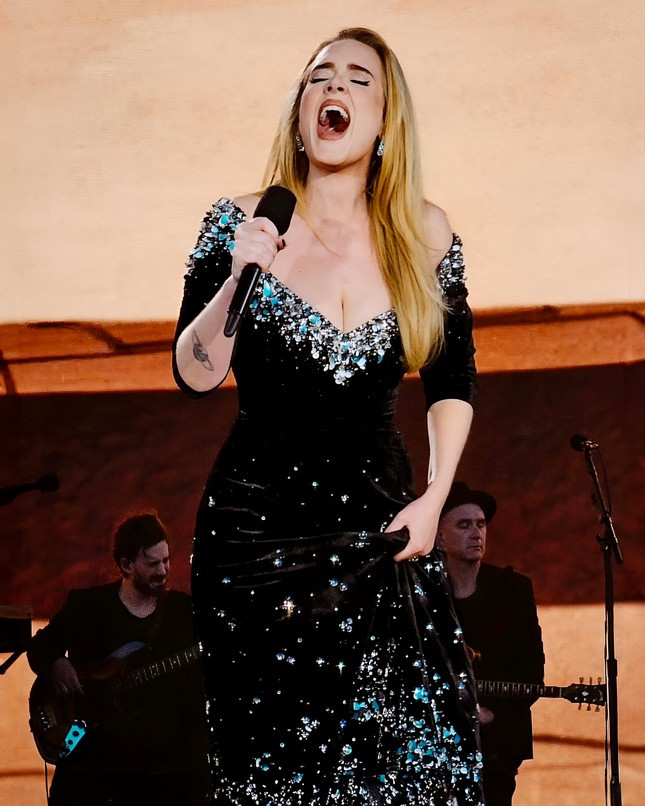 | Thiết kế váy tuyệt đẹp giúp Adele tỏa sáng trên sân khấu. |