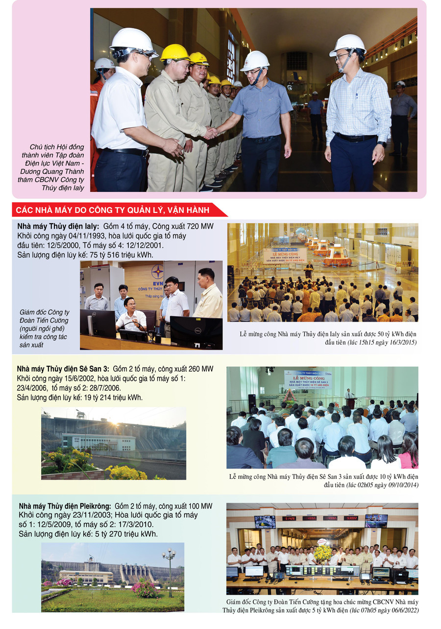 (GLO)- Công ty Thủy điện Ialy tiền thân là Nhà máy Thủy điện Ialy, được thành lập ngày 28-2-2000. Năm 2007, chuyển đổi thành Công ty Thủy điện Ialy, là đơn vị thành viên của Tập đoàn Điện lực Việt Nam, đảm nhận chức năng quản lý vận hành 3 nhà máy thủy điện lớn trên sông Sê San: Thủy điện Ialy, Thủy điện Sê San 3 và Thủy điện Pleikrông, với tổng công suất 1.080 MW, sản lượng điện bình quân 5 tỷ 310 triệu kWh/năm.