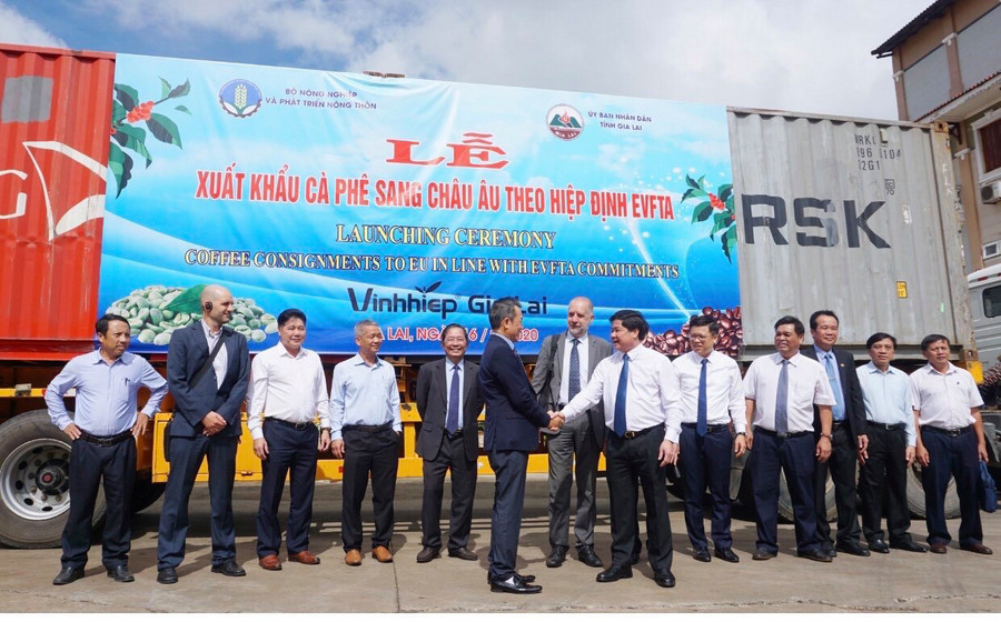 Thị trường xuất khẩu nông sản của Công ty đến hơn 60 quốc gia trên thế giới, chủ yếu là các nước phát triển có yêu cầu khắt khe về chất lượng và an toàn vệ sinh thực phẩm. Năm 2020, Vĩnh Hiệp vinh dự là doanh nghiệp đầu tiên của Việt Nam xuất khẩu cà phê sang châu Âu theo Hiệp định EVFTA với sản lượng 296 tấn cà phê nhân xanh, cà phê rang xay được vận chuyển tới Đức và Bỉ. Để có sản phẩm cà phê đáp ứng đầy đủ các nhu cầu khắt khe về chất lượng, an toàn thực phẩm và sự ổn định từ các nước nhập khẩu, Công ty TNHH Vĩnh Hiệp đã ứng dụng công nghệ cao vào xây dựng vùng nguyên liệu cà phê bền vững đạt tiêu chuẩn Organic, 4C, RA và nhà máy chế biến cà phê đạt chứng nhận BRC, HACCP, ISO 9001, ISO 22000, HALAL.