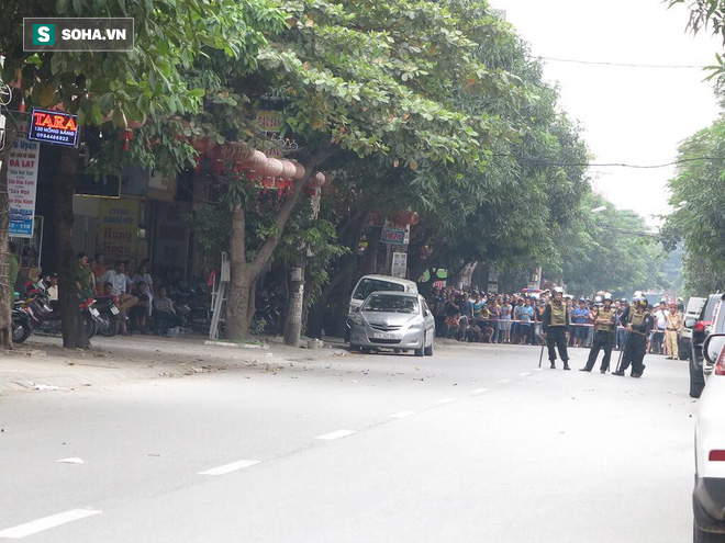 Cả đoạn đường dài khoảng 100m xung quanh căn nhà có đối tượng hình sự cố thủ được vây chặt để đảm bảo an ninh. Toàn bộ người dân phải đứng ngoài rào chắn để đảm bảo an toàn.