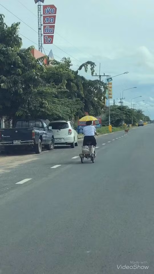 Thầy giáo Wuttichai Suphap của trường đã phát hiện ra cụ bà Kaysorn thú vị này và đã quay phim cảnh bà đi xe đạp về nhà sau kỳ thi.