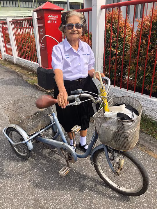 Một cụ bà ở Thái Lan đã chứng tỏ với mọi người sự học không bao giờ muộn khi quyết định đạp xe đi thi qua lớp 6.