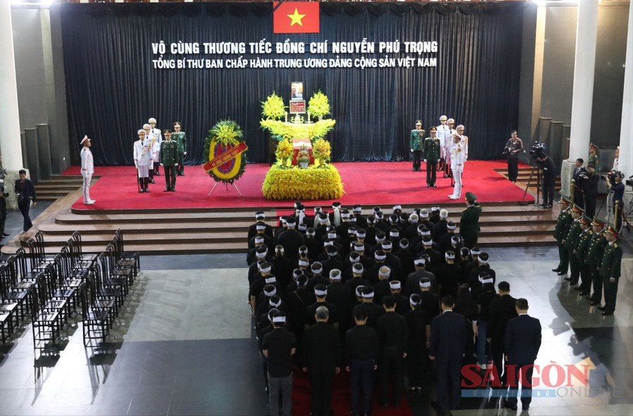 Hôm nay, 25-7, tang lễ Tổng Bí thư Nguyễn Phú Trọng được tổ chức theo nghi thức Quốc tang. Trong hai ngày Quốc tang (25 và 26-7), các cơ quan, công sở, nơi công cộng treo cờ rủ, không tổ chức các hoạt động vui chơi giải trí công cộng.