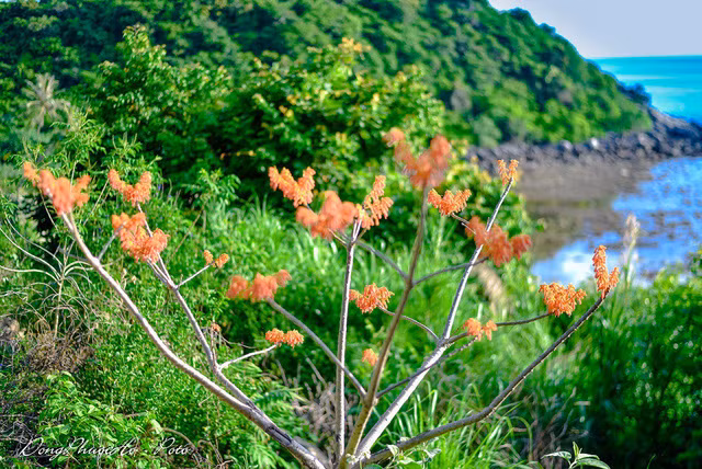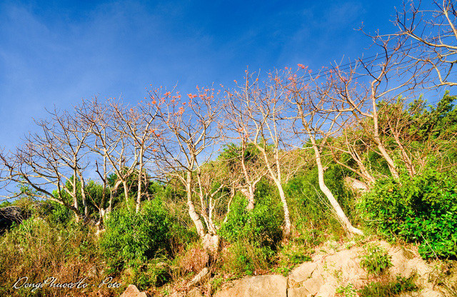 Cây ngô đồng bản địa trên đảo Cù Lao Chàm khác với ngô đồng ở Huế bởi sắc hoa không phớt tím hay hồng nhạt mà đỏ rực cả góc trời. Loài cây rực rõ đến mê hoặc này chỉ mọc trên các sườn phía tây quanh đảo.