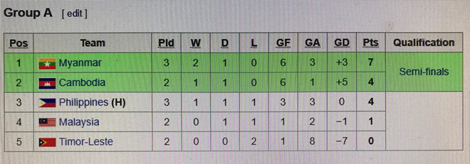 Khác với bảng B thấy rõ cuộc chiến giành vé vào bán kết chỉ là cuộc tranh chấp tay ba giữa Việt Nam- Indonesia và Thái Lan thì bảng A dù số lượng đội ít hơn nhưng lại đang có đến 4 đội cùng hy vọng nhắm đến 2 suất vào chơi ở những trận cuối cùng.