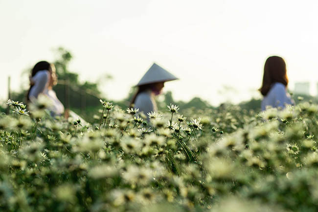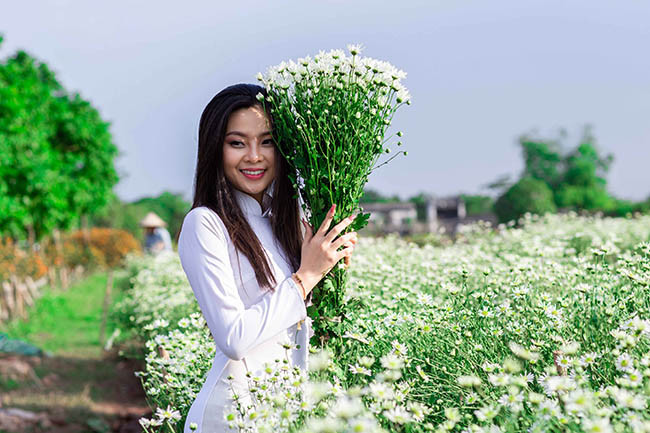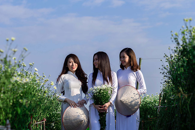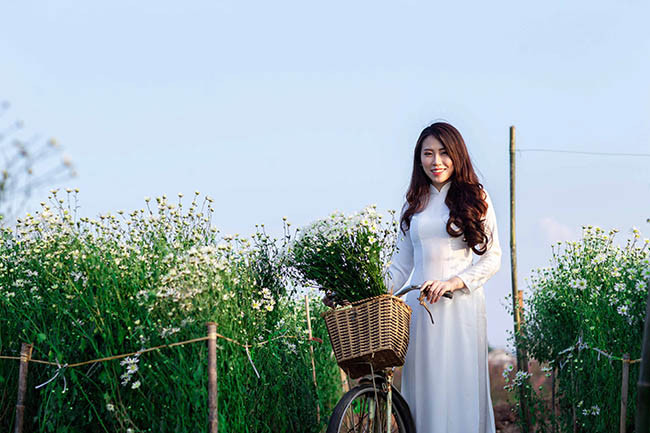 Ngắm nhìn hình ảnh những cô gái trẻ xúng xính áo dài trắng, nụ cười lúng liếng bên cúc họa mi, tựa như cả mùa Đông đang tựu lại chỉ trong một khung hình bé nhỏ.