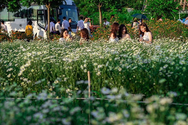 Thung lũng hoa Long Biên và nhiều địa điểm khác cũng bắt đầu đông nghẹt người đến chiêm ngưỡng và chụp ảnh.