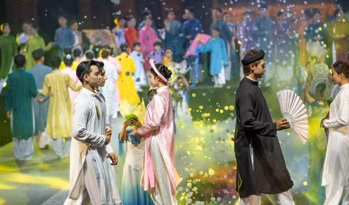 Tuần lễ Áo dài cộng đồng 2025 bằng chương trình nghệ thuật "Áo dài Huế" mang tên Sắc màu văn hoá khai mạc tại Cung An Định (TP Huế) để lại nhiều ấn tượng. Giữa lòng Cố đô, những ký ức cung đình lại một lần nữa sống dậy thông qua những tà áo được thêu, may tỉ mỉ.