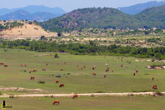 Một thảo nguyên bò và cừu tại Bình Tiên, những đặc sản nổi tiếng khác của vùng đất "Gió như Phan, nắng như Rang". Thôn Bình Tiên cũng là ranh giới hai tỉnh Ninh Thuận và Khánh Hòa, là một điểm đến hoang sơ mới được rất nhiều bạn trẻ tìm đến gần đây.