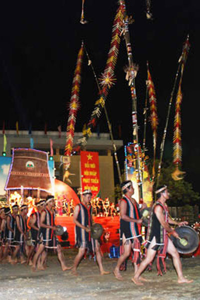 23 giờ 12: Cồng chiêng là sợi dây kết nối tình đoàn kết, gắn bó của nhân dân các dân tộc Tây Nguyên trong cộng đồng dân tộc Việt Nam thể hiện tâm linh ước vọng, tình cảm của đồng bào từ thuở hồng hoang đến giai đoạn đấu tranh cách mạng và hòa bình xây dựng đất nước XHCN, phần biểu diễn của 2 đội cồng chiêng xã Chư Á và phường Thắng Lợi TP.Pleiku với bài mừng lúa mới đã khắc họa rõ nét.