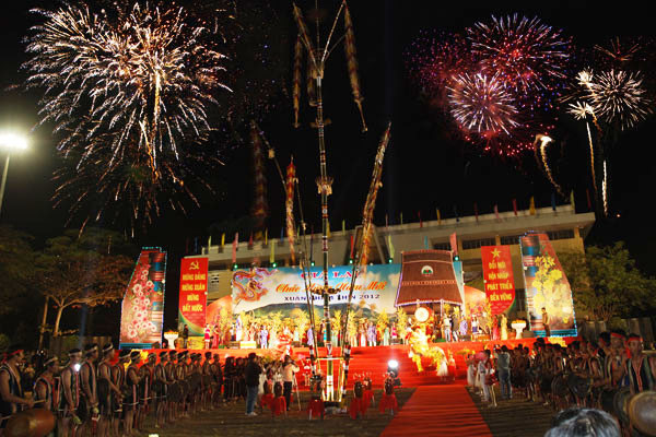 23 giờ 55: Ông Phạm Thế Dũng- Chủ tịch UBND tỉnh phát biểu chúc tết "Gia Lai chúng ta vui mừng với những kết quả đạt được, nhân dịp năm mới 2012, trong khoảng khắc thiêng liêng này tôi kính chúc toàn dân năm mới an khang". Sau đó, ông Phạm Thế Dũng đã đánh trống khai xuân Nhâm Thìn 2012. Tiếp đó các nghệ nhân đánh cồng chiêng cùng màn biểu diễn của hai đội lân.