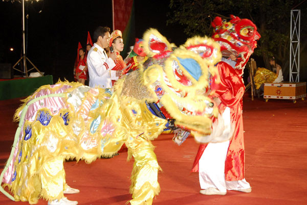 23 giờ 23: Trên sân khấu là màn trình diễn sinh động và vui tươi của hai đội lân.