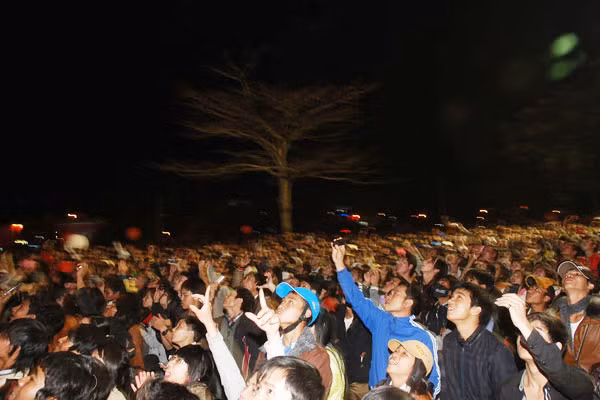 | Khán giả chờ đến thời khắc giao thừa. |