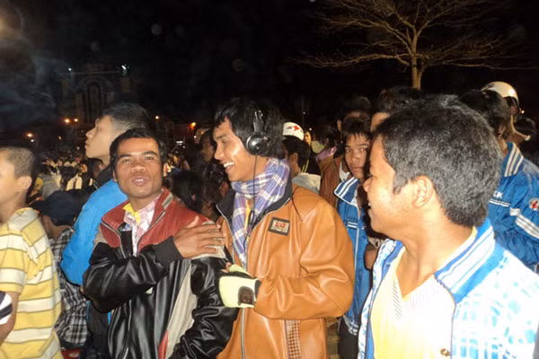 Song song với đó, lượng người cũng dần đổ về càng lúc càng đông, đa phần là các bạn trẻ. Theo ước lượng, đã có khoảng trên dưới 1 ngàn người tụ tập về đây để thưởng thức các tiết mục văn nghệ và chờ tới tới thời khắc giao thừa.
