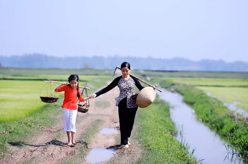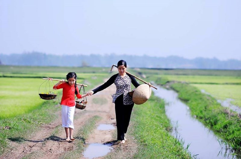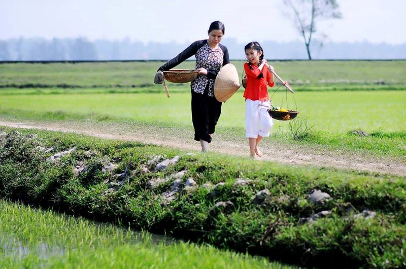 | Bức hình "mẹ gánh con ra đồng" của chị Nguyễn Thị Liên khiến ai xem cũng thích thú |