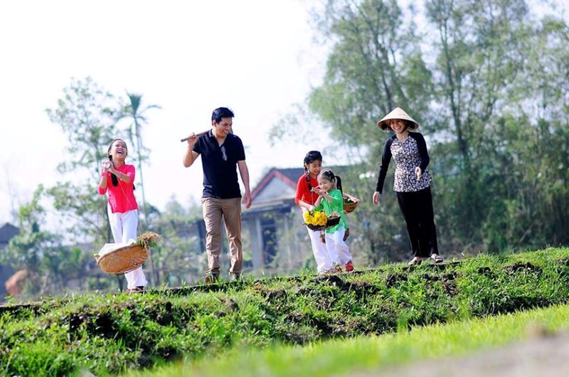Từng khiến bạn đọc trầm trồ với chùm ảnh áo dài duyên dáng của 4 mẹ con, Xuân Mậu Tuất 2018, gia đình chị Nguyễn Thị Liên tiếp tục thực hiện bộ ảnh dễ thương tại cánh đồng quê.