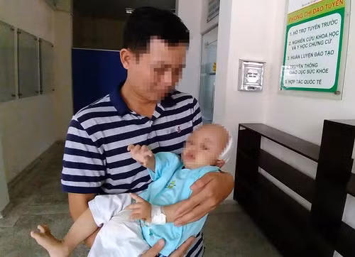 Bé T.P lúc mới sinh ra đã bị dị tật dính khớp trán, não úng thủy, thoát vị não chẩm. Sau sinh 2 tuần, bé được phẫu thuật đặt dẫn lưu não thất - ổ bụng do não úng thủy. Lúc 6 tháng tuổi, bé bị mổ cắt khối thoát vị não chẩm... Đến nay, bé lại được mổ tạo hình trán - ổ mắt để chỉnh hình dị tật dính khớp sọ trán. Hiện tình trạng sưng ở vùng đầu của bé đã giảm dần sau 2 tuần phẫu thuật. Bệnh nhi 17 tháng tuổi này đang hồi phục tốt, nhận thức và sinh hoạt bình thường. Dù theo dõi tình hình của con hằng ngày, cha mẹ P. vẫn không tin đó là sự thật. Cha của bé, anh T.A (38 tuổi, quân nhân) nói nghẹn lời: "Lúc mới sinh con, vợ chồng tôi rất sợ, sốc lắm. Không hiểu sao đứa con đầu rất khỏe mạnh vậy mà P. lại dị dạng… Vợ tôi khóc suốt, không biết con mình sẽ như thế nào với đoạn đời còn lại trong một hình hài như vậy. Cô ấy khóc đến nỗi gia đình sợ cô ấy bị trầm cảm, làm điều dại dột. Chúng tôi đã động viên nhau, cố gắng vượt qua cú sốc tâm lý để chăm lo, chữa trị cho con" - người cha nhớ lại.