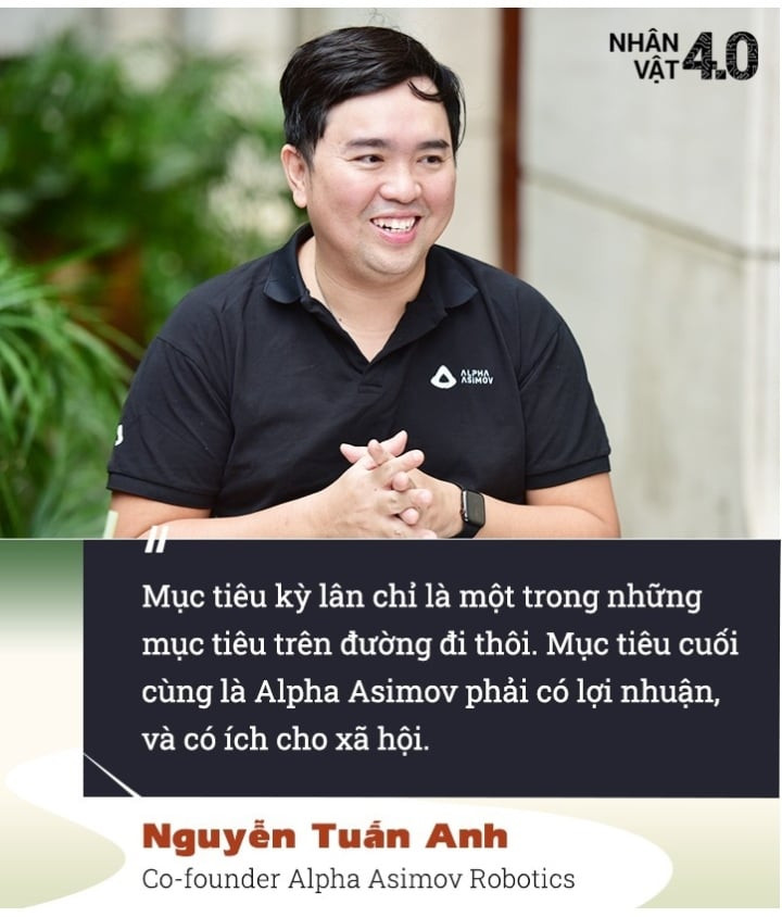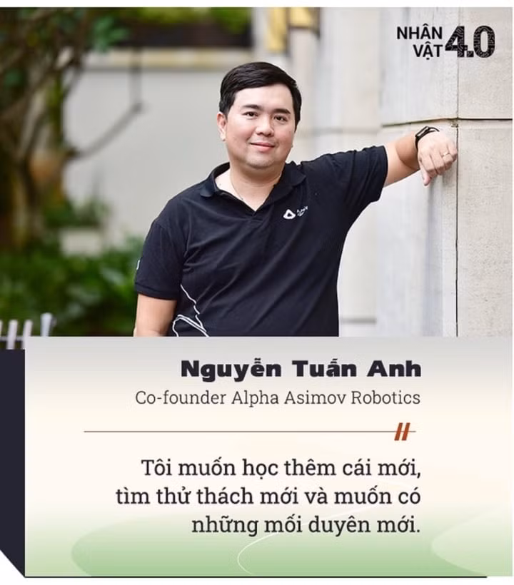 Trong gần 2 năm khởi nghiệp chế tạo robot Alpha Asimov, Nguyễn Tuấn Anh cho biết, anh vui hơn “dù phải đi xin xỏ, giải thích rất nhiều cho người khác hiểu” nhưng “thấy bất ngờ khi một số đối tác vẫn e dè với công nghệ này”. Điểm thú vị nữa là anh cảm thấy “được tự chủ về thời gian trong giai đoạn hiện nay” và vợ anh rất ủng hộ, vui vẻ chia sẻ cũng như hỗ trợ chồng trong công việc.