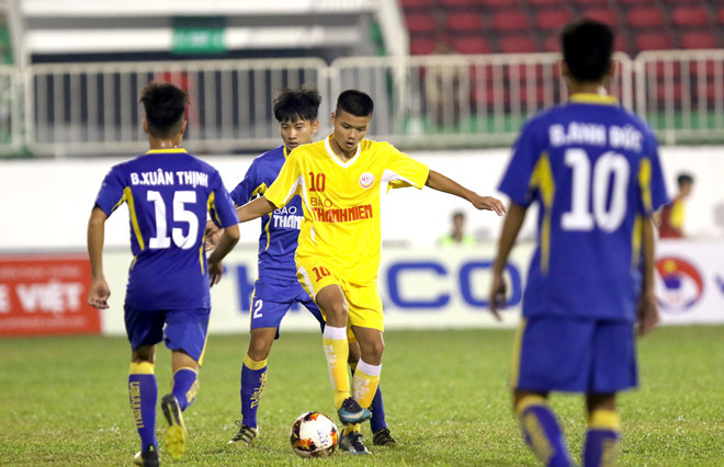 Ngoài sao mai Trần Gia Bảo lọt vào tốp 60 trẻ thế giới, HAGL vừa trình làng chân sút trẻ Nguyễn Minh Tâm (số 12, HAGL) như niềm hy vọng mới trên hàng công của đội bóng phố núi.
