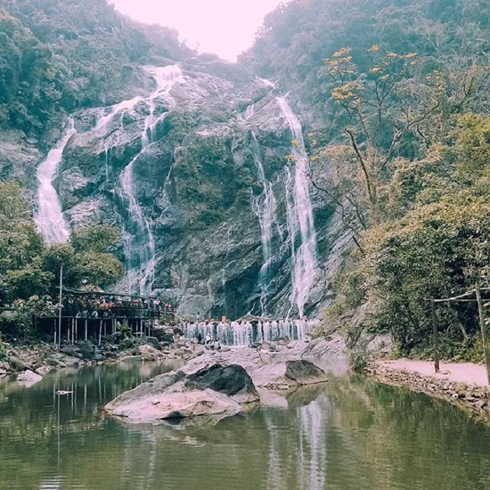 Dưới chân thác có hồ nước sâu tự nhiên rộng hàng trăm mét vuông, xanh biếc và mát lạnh. Từ chân thác này, nước theo con suối rộng khoảng 20 mét, lô nhô đá tảng giữa dòng, quanh co uốn khúc trong thung lũng trước khi chảy ra hợp nước với các khe suối khác.