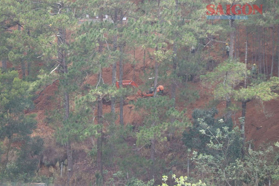 Ghi nhận tại khoảnh 3, tiểu khu 156 thuộc phường 10, nhiều công nhân sử dụng máy móc san gạt mở đường, tạo nền để xây dựng các hạng mục thuộc dự án du lịch - nghỉ dưỡng Núi Hoa Đà Lạt.
