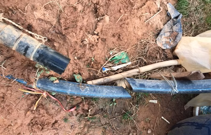 Ống nước của gia đình chị Hà bị chặt phá thành từng khúc.