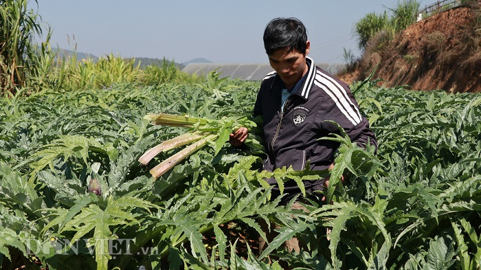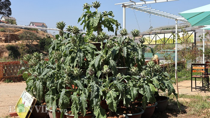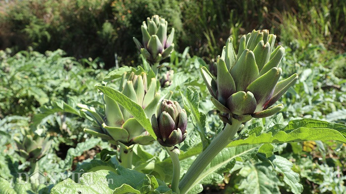 Những triền đồi dốc được anh Mai Văn Đông (40 tuổi, TP. Đà Lạt, tỉnh Lâm Đồng) múc thành ruộng bậc thang sau đó trồng bạt ngàn cây atiso. Với loại cây trồng bôn trổ như hoa sen này, chỉ riêng bán lá thôi anh Đông đã bán được với giá 2.500 đồng/kg. Ngoài ra, chủ nhân của khu vườn còn bán được cả hoa, thân, rễ của cây atiso.