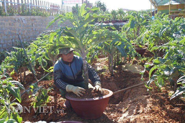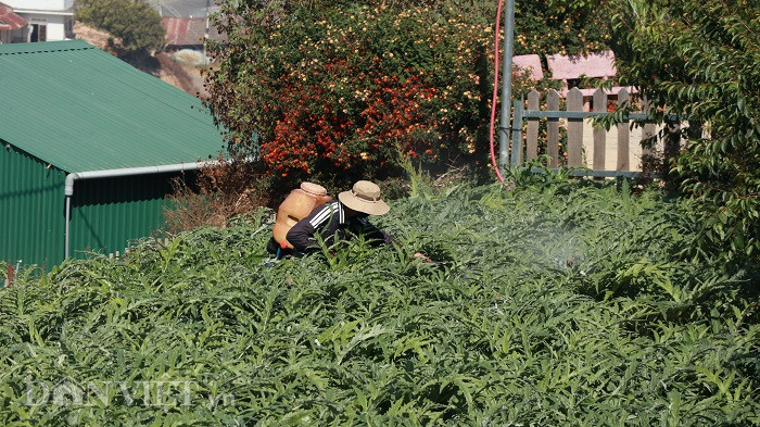 Anh Đông mải miết chăm sóc cho vườn atiso dù đã có hẹn với phóng viên trước.