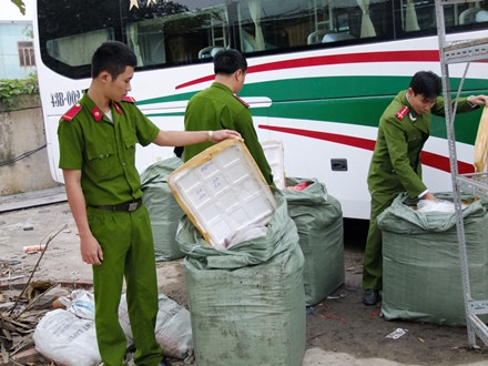 Vào khoảng 7 giờ 30 phút ngày 26-12, trên đường Hoàng Văn Thái (TP. Đà Nẵng) Phòng Cảnh sát phòng- chống tội phạm về môi trường (Công an TP. Đà Nẵng) đã phối hợp với Chi cục thú y TP. Đà Nẵng tiến hành kiểm tra xe ô tô giường nằm 38 chỗ BKS 43B-002.74 do Trần Công Minh (SN 1964, trú tại Phú Lộc, Thừa Thiên Huế) làm tài xế. Chủ xe là ông Nguyễn Minh Châu (SN 1975, trú đường Nguyễn Như Hạnh, TP. Đà Nẵng).