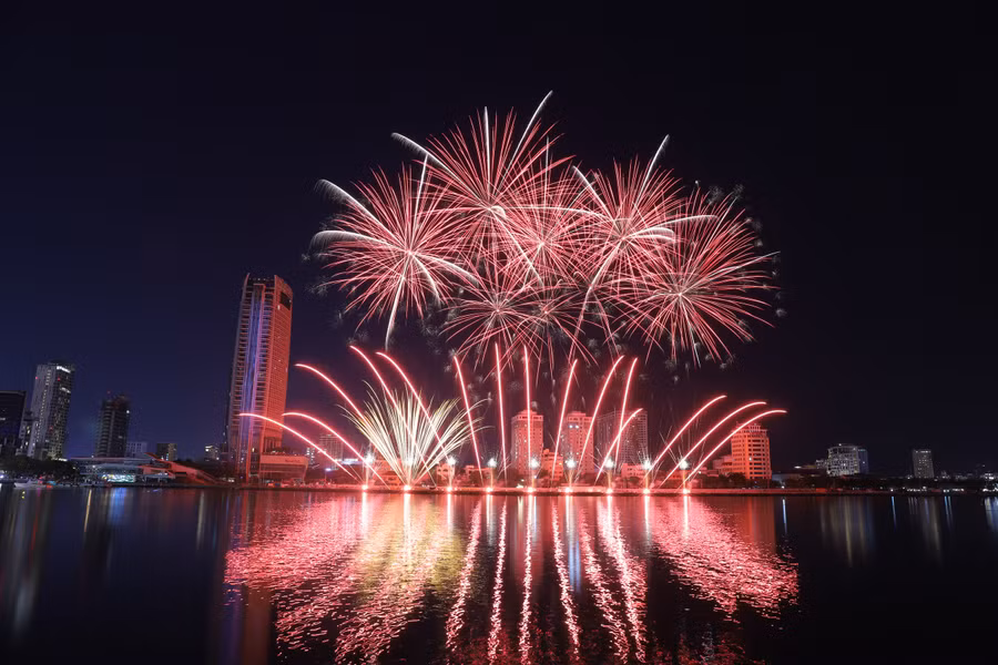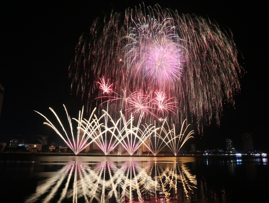 | Không ít khán giả đã sửng sốt trước những chùm pháo hoa lộng lẫy trên không trung, phản chiếu đa sắc màu lên mặt nước, như một vương quốc thiên nhiên sống động từ ngày đến đêm, không thể rời mắt dù chỉ một giây |