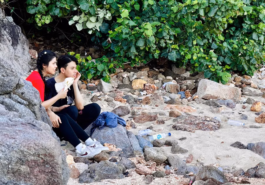 Chim bồ câu quanh quẩn bên du khách tạo nên hình ảnh gần gũi, thân thiện ngay trên bãi biển Nha Trang, tỉnh Khánh Hòa.