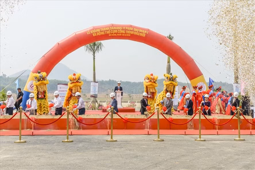 | Phó Thủ tướng Vũ Đức Đam phát biểu tại lễ khánh thành giai đoạn 1 Khu công nghệ thông tin tập trung. |
