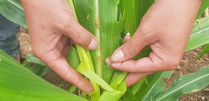 Hiện diện tích gieo trồng ngô vụ 1 của H.Kon Chro khoảng 5.800 ha, đang trong giai đoạn 5 lá đến trổ cờ phun râu. Từ cuối tháng 5 vừa rồi, cơ quan chức năng của huyện đã phát hiện có sâu keo mùa thu gây hại cho cây trồng. Đến nay đã có hơn 1.600 ha ngô bị sâu bệnh, trong đó hơn 10 ha bị bệnh quá nặng phải cày bỏ