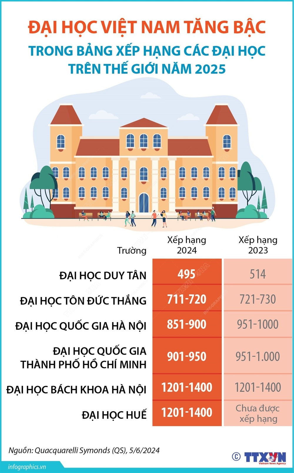 Tổ chức Quacquarelli Symonds (QS) ngày 5/6/2024 công bố kết quả xếp hạng các đại học trên thế giới năm 2025 (QS WUR 2025).