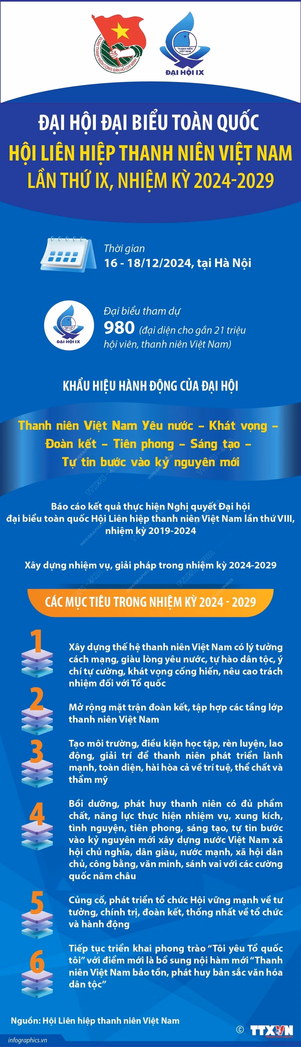 Đại hội có 980 đại biểu, đại diện cho hơn 21 triệu cán bộ, hội viên, thanh niên cả nước tham dự. Khẩu hiệu hành động trình tại Đại hội là “Thanh niên Việt Nam yêu nước - đoàn kết - khát vọng - sáng tạo - tiên phong - tự tin bước vào kỷ nguyên mới”. Đại hội là sự kiện quan trọng, ngày hội đoàn kết rộng rãi thanh niên Việt Nam yêu nước, đánh dấu bước phát triển mới của tổ chức Hội và phong trào thanh niên. Đại hội cũng là dịp các đại biểu trao đổi kinh nghiệm, thảo luận và đưa ra các quyết sách đối với công tác Hội và phong trào thanh niên nhiệm kỳ mới, góp phần phát huy sứ mệnh thanh niên Việt Nam trong giai đoạn đất nước bước vào kỷ nguyên mới.