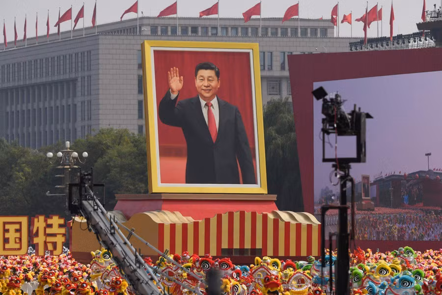Chân dung ông Tập Cận Bình được cử hành đi đầu trong cuộc diễu - duyệt binh ở Thiên An Môn sáng nay 1/10 - ảnh SCMP.