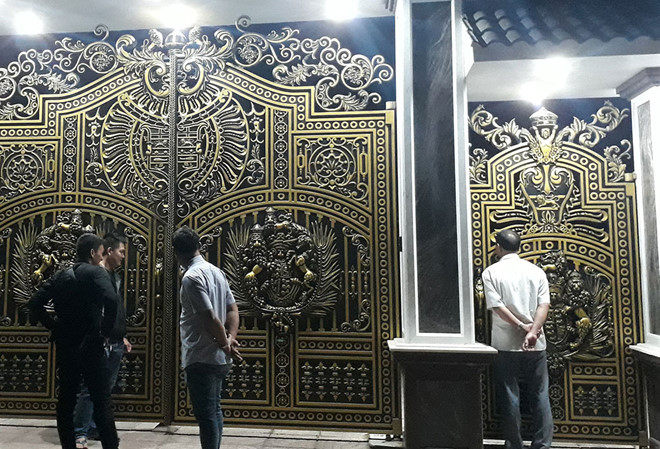 Các trinh sát đứng trước cổng nhà Quyền