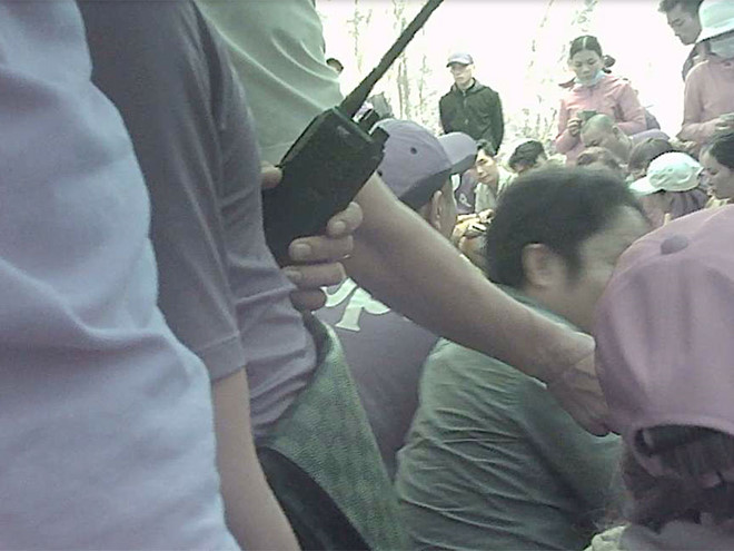Đội ngũ cảnh giới tại sới bạc dùng bộ đàm để liên lạc với nhau