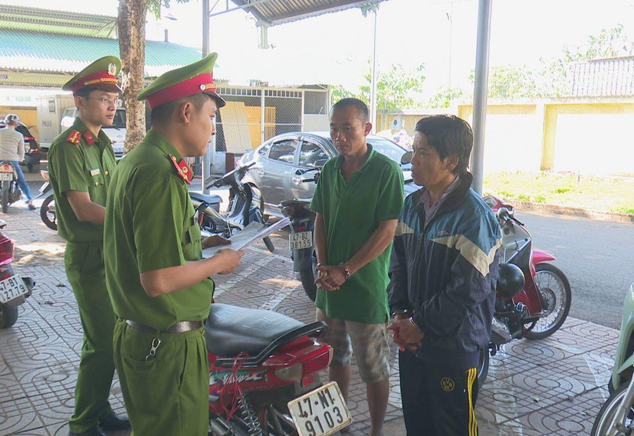 | Hai đối tượng tại cơ quan công an. Ảnh TGTT |