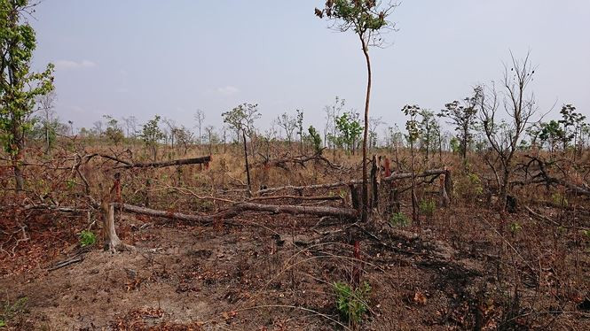 Hiện trường của vụ phá rừng này cho thấy có hàng trăm cây gỗ bị cắt hạ bằng cưa lốc với đường kính từ 5 đến 20cm gồm: dầu, cà chít, chiêu liêu và một số cây gỗ tạp khác.