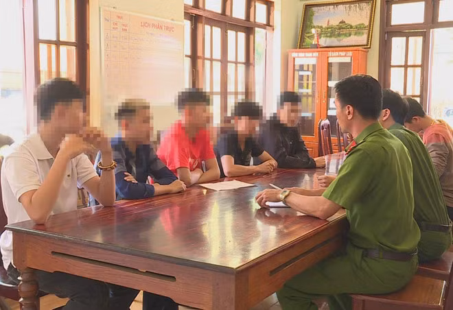 Công an làm việc với nhóm thiếu niên tham gia hỗn chiến. Ảnh: Hoàng Bình