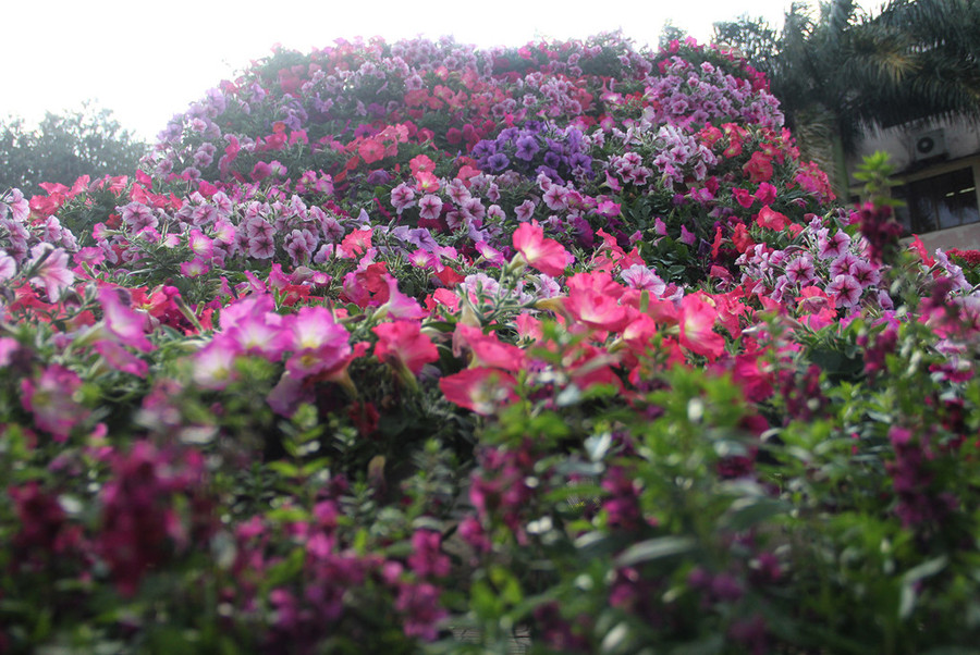 Đây là lần đầu tiên TP Buôn Ma Thuột làm đường hoa. Trong hình là những giỏ dạ yến thảo được sắp xếp hình thác nước.
